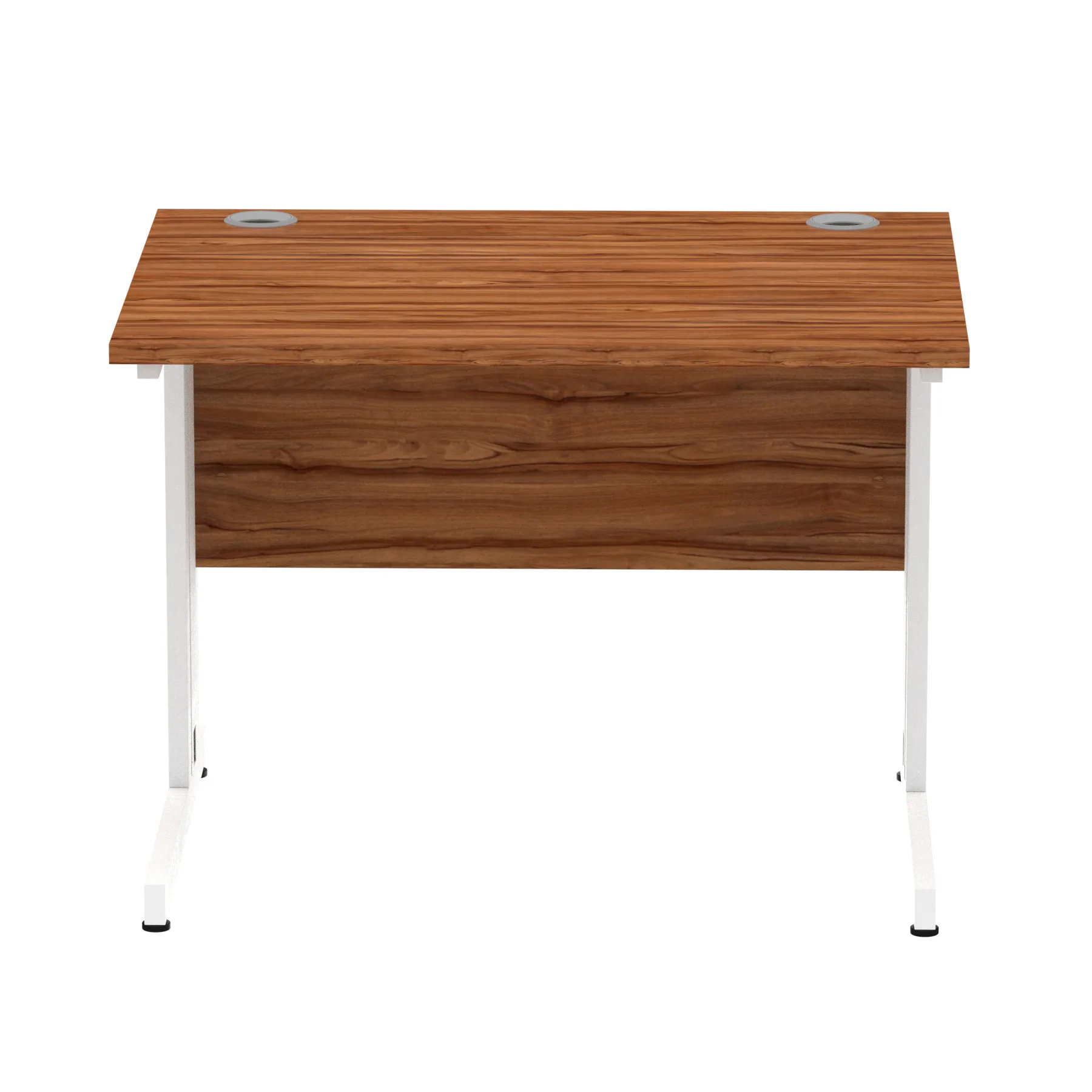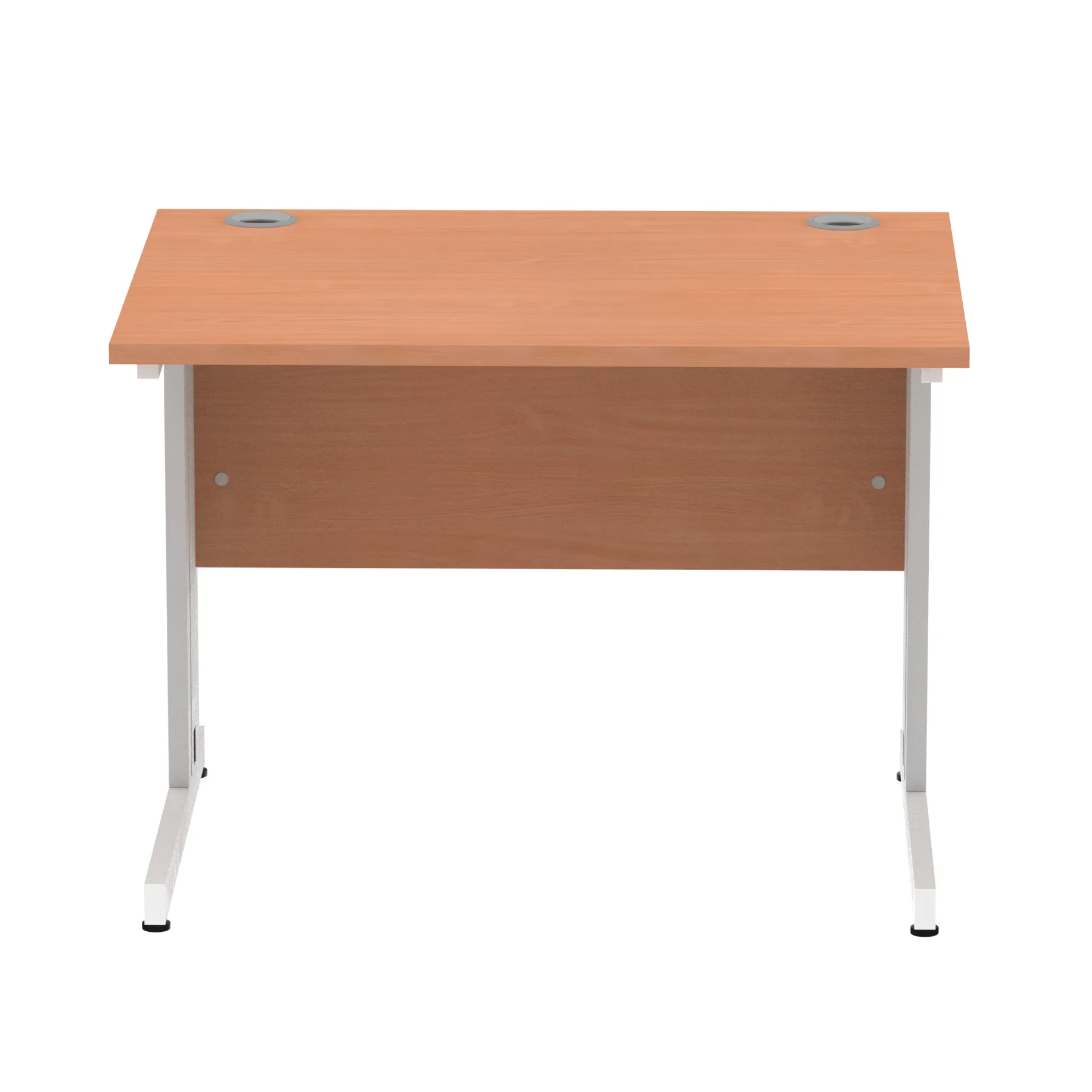 Impulse contract desk | 25mm tops | Wire management panel | Heat resistant melamine finish | 18mm modesty panel | 2mm protective abs edging | Cable managed legs | 2 cable ports | Height adjustable feet | Steel to steel fixings | 2 modesty panel slots | Deep set modesty panel (5″) allows for compatibility of most screen clamp fittings | Weight Capacity 135Kg