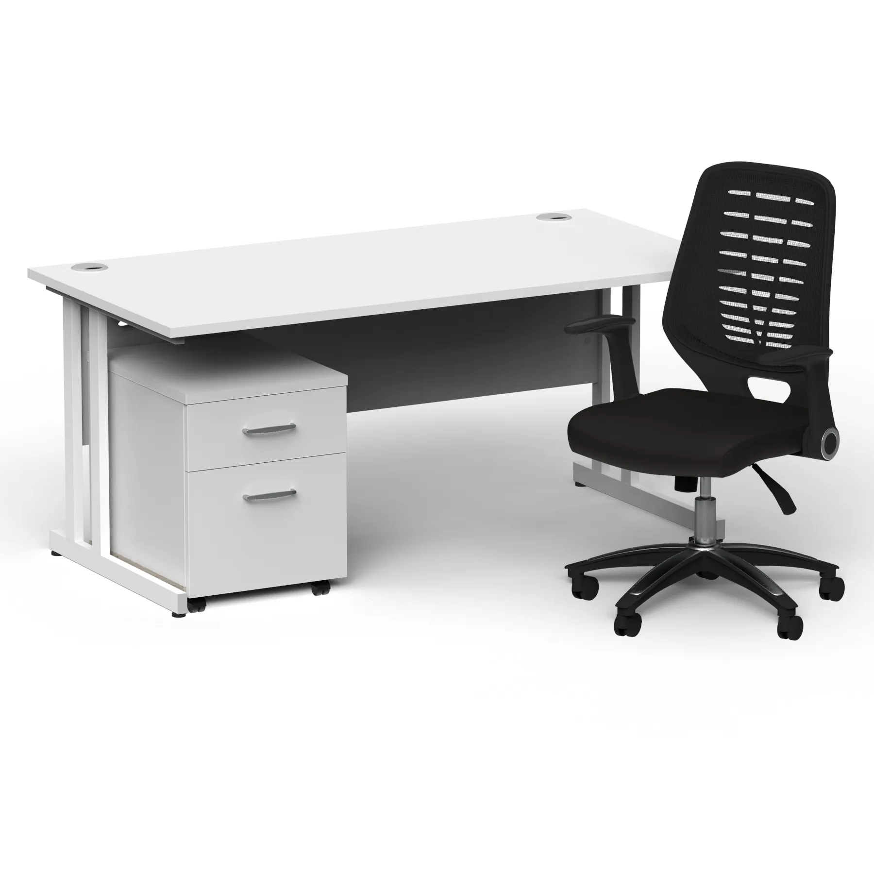 Impulse 1600mm Cantilever Straight Desk With Mobile Pedestal and Relay Black Back Operator Chair