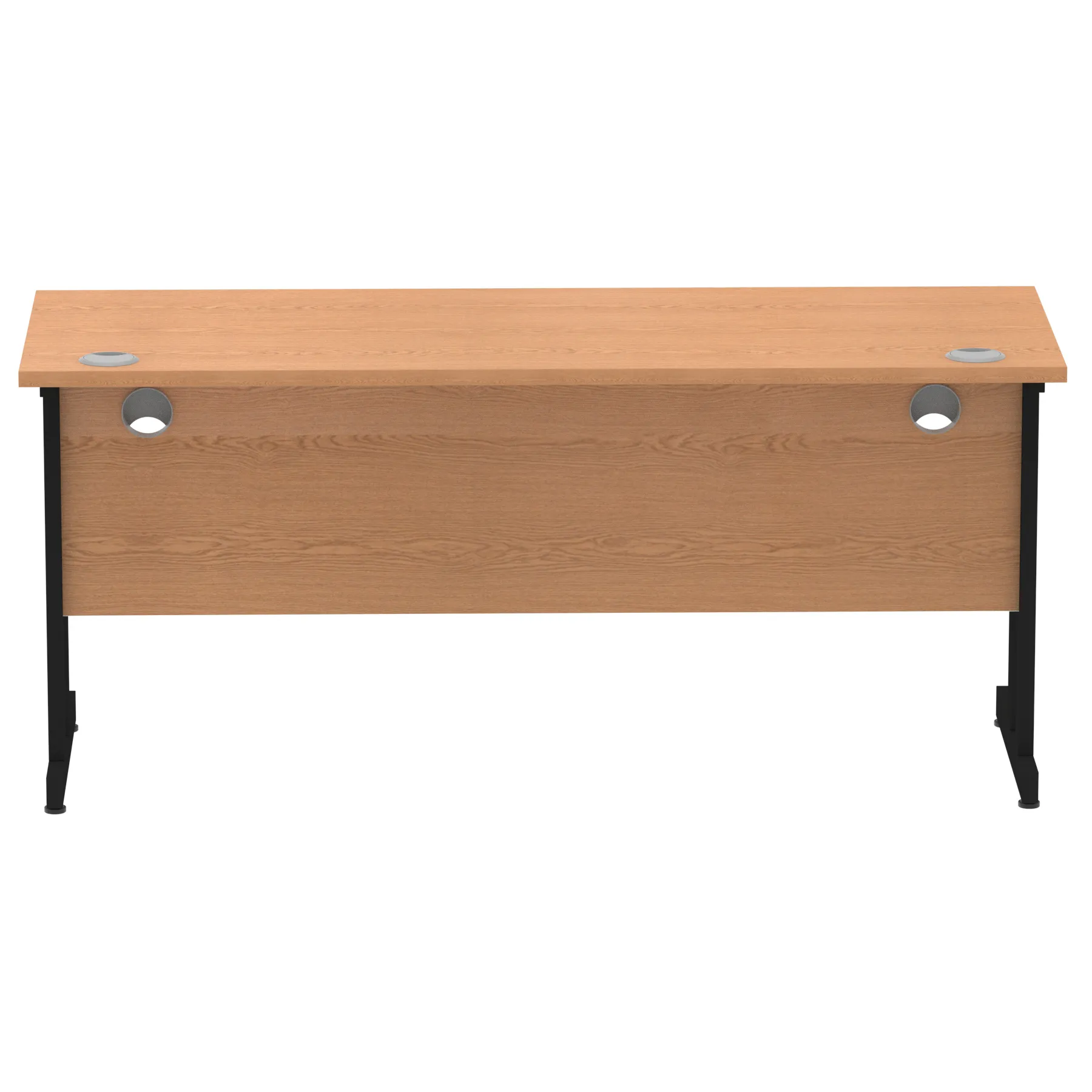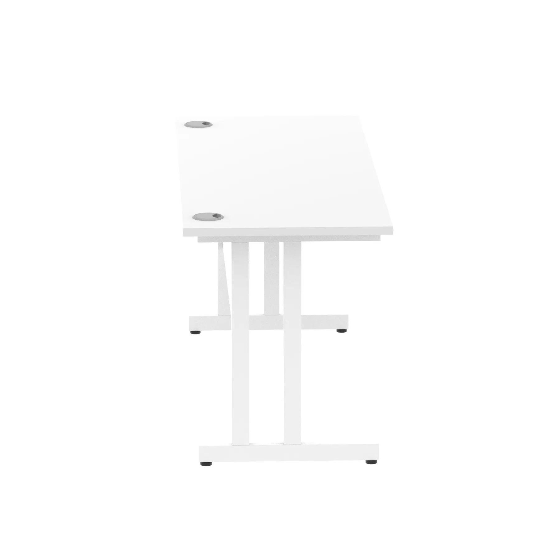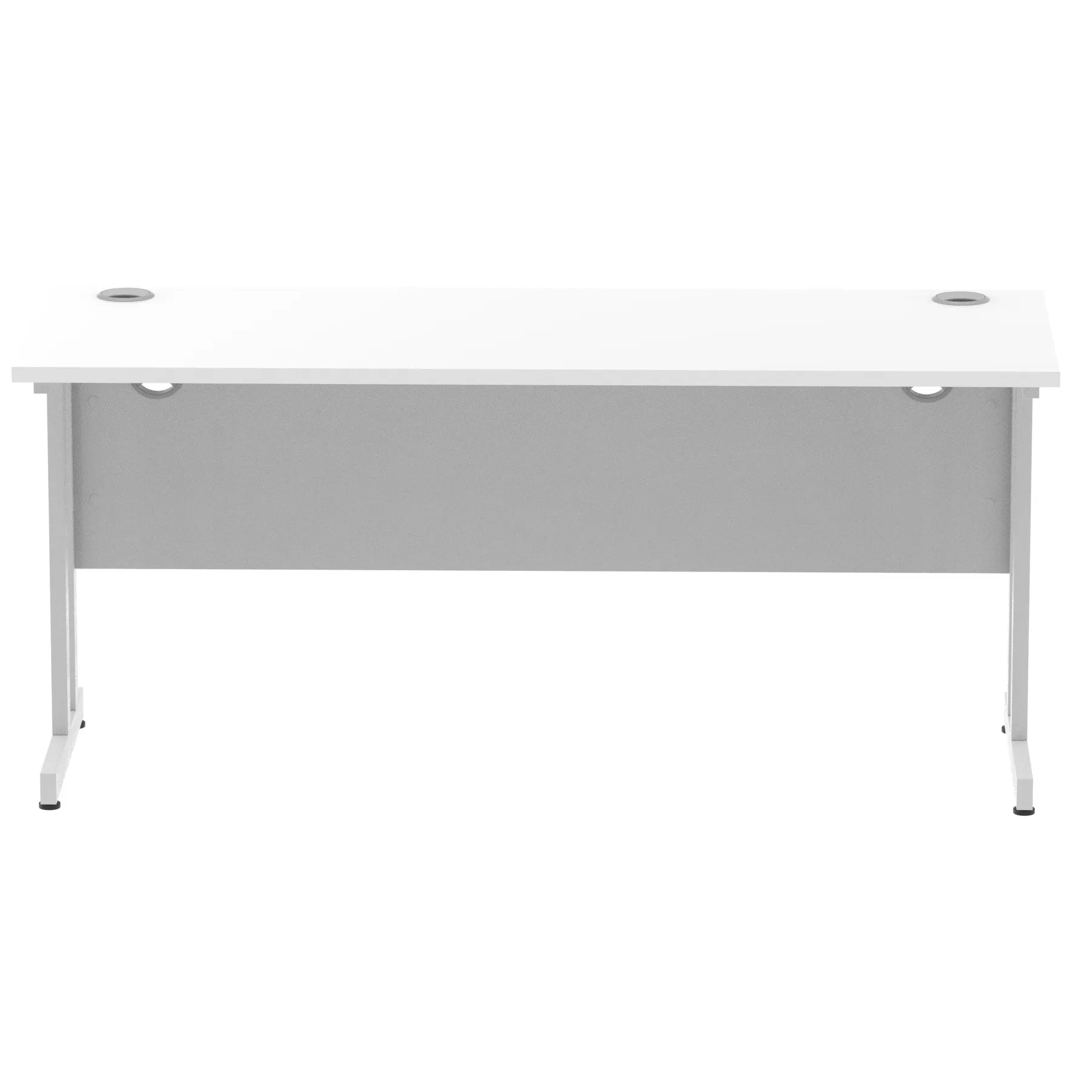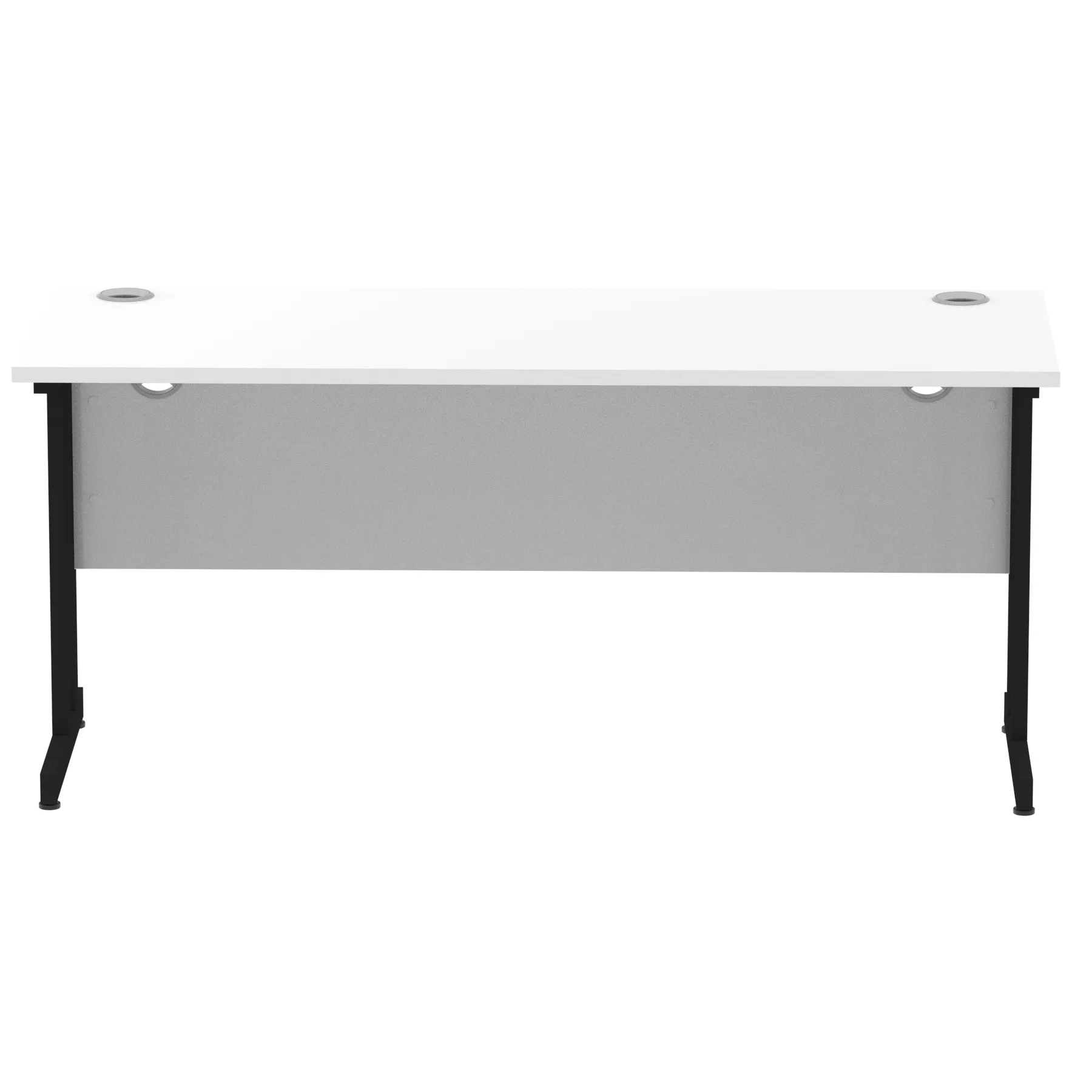 Impulse contract desk | 25mm tops | Heat resistant melamine finish | 18mm modesty panels | 2mm protective abs edging | Silver coated double strut legs | 2 cable ports | Height adjustable feet | Steel to steel fixings | 2 modesty panels slots Deep set modesty panel (5″) allows for compatibility of most screen clamp fittings | Weight Capacity 135Kg