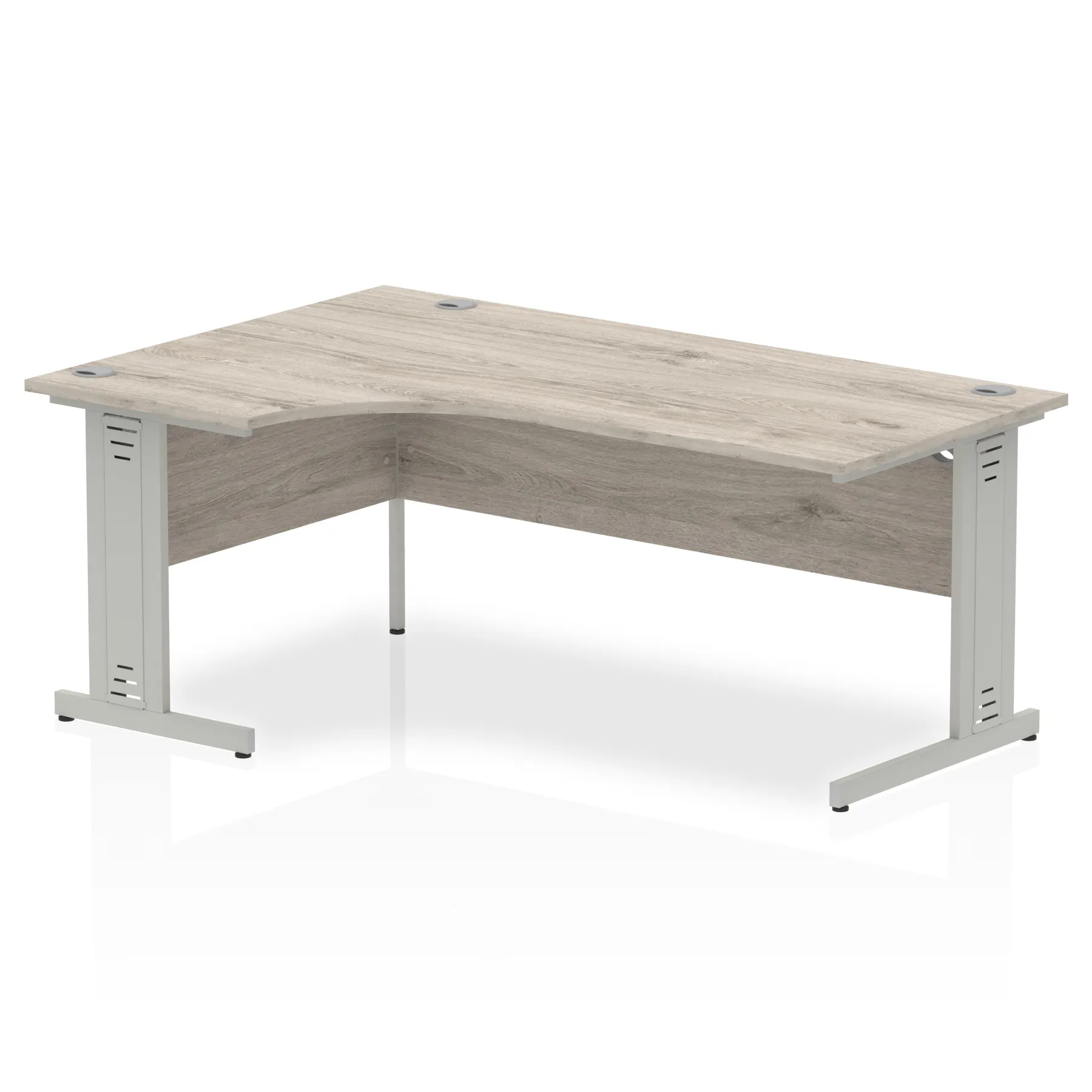 • Impulse contract 1800 wide crescent desk • 25mm tops • Heat resistant melamine finish • 18mm modesty panels • 2mm protective abs edging • Double strut legs • 3 cable ports • Height adjustable feet • Steel to steel fixings • 3 modesty panels slots • 600 deep • Deep set modesty panel (5″) allows for compatibility of most screen clamp fittings • Weight Capacity: 135Kg