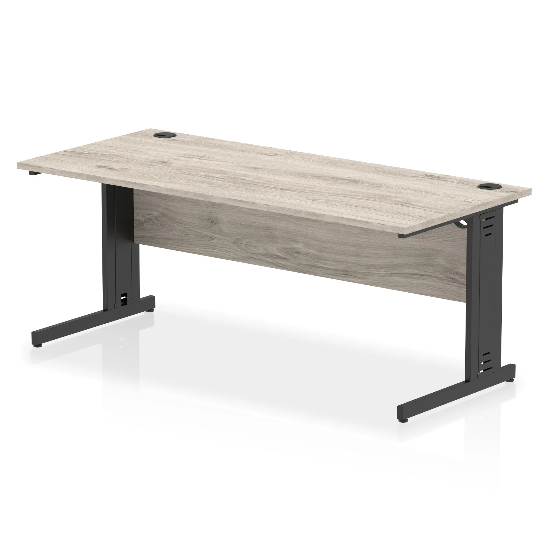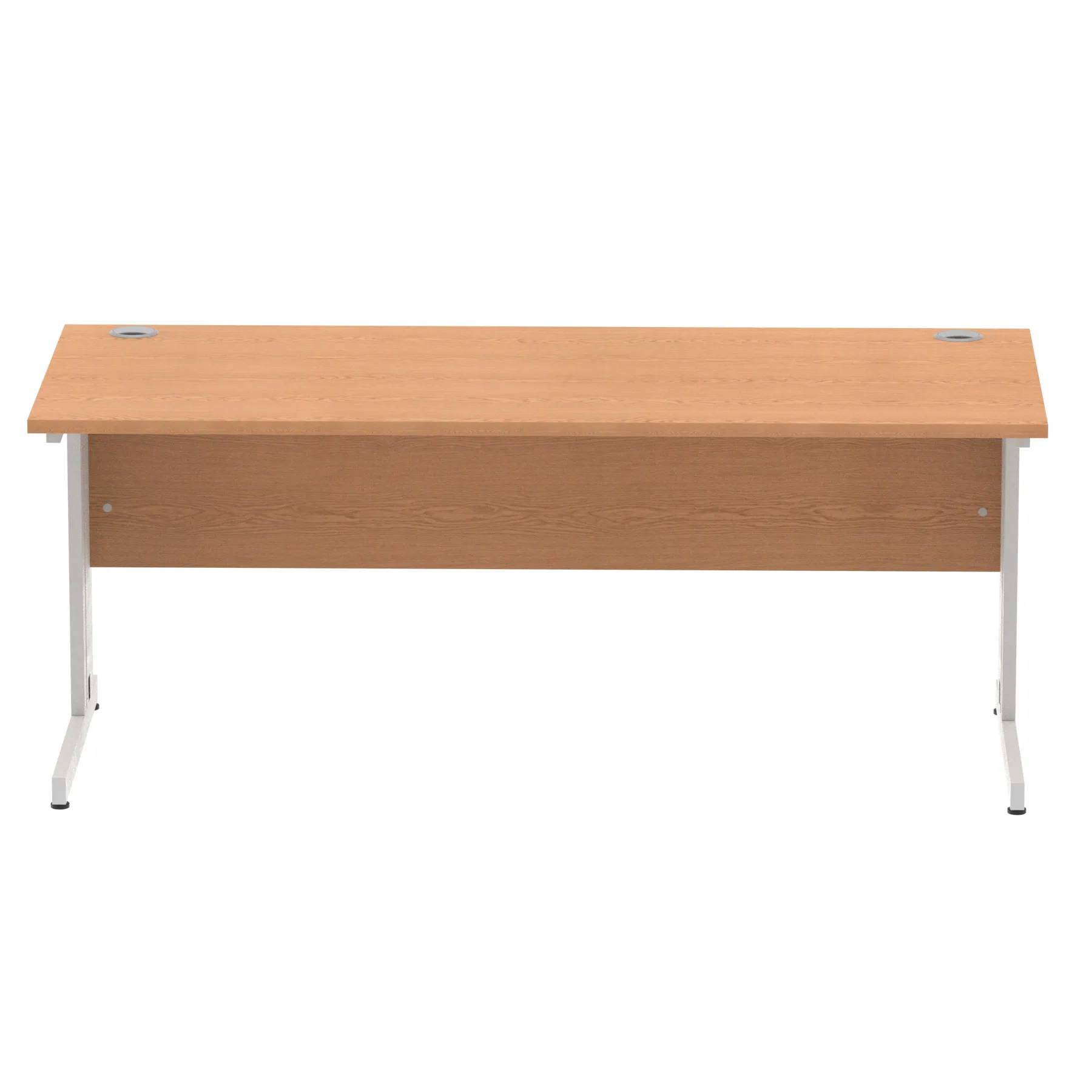 Impulse contract desk | 25mm tops | wire management panel | Heat resistant melamine finish | 18mm modesty panel | 2mm protective abs edging | Silver coated double strut legs | 2 cable ports | Height adjustable feet | Steel to steel fixings | 2 modesty panel slots | Deep set modesty panel (5″) allows for compatibility of most screen clamp fittings | Weight Capacity 135Kg