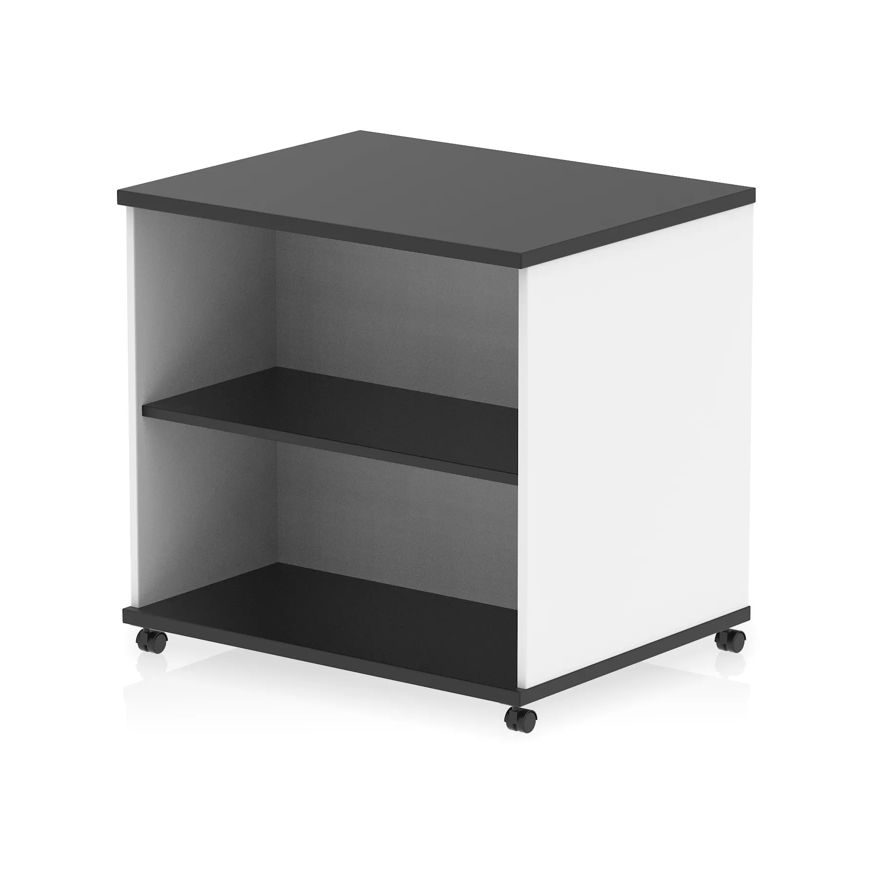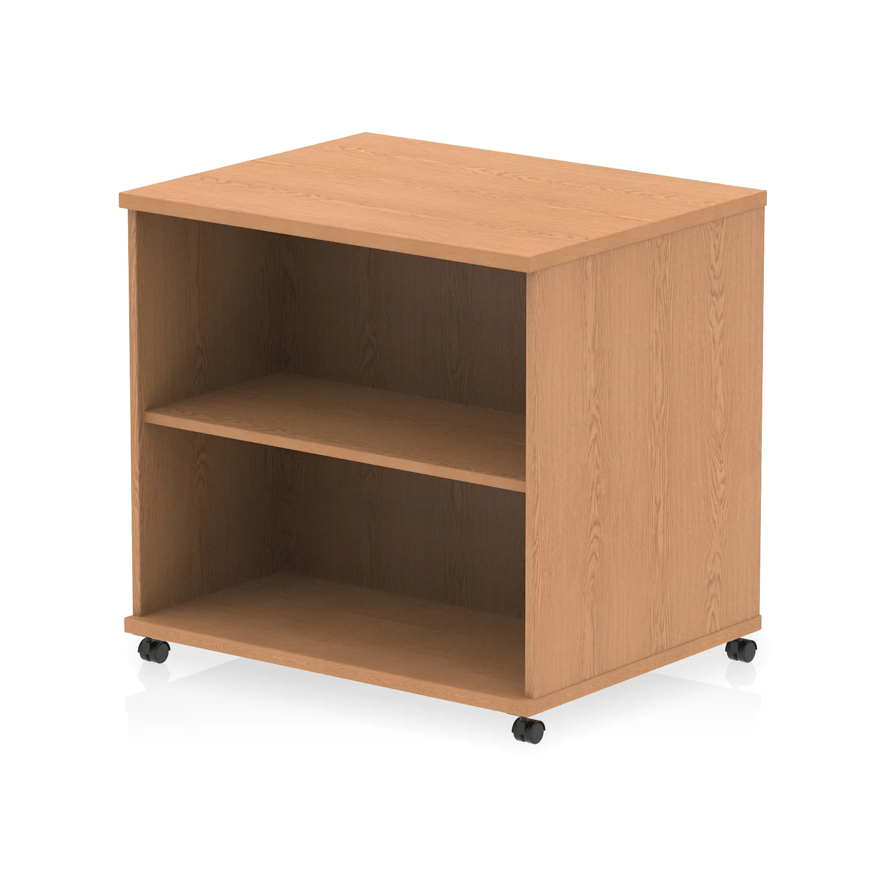• Impulse 800 wide bookcase • 25mm thick wood finish • Fits on end of 600 deep desk • 2mm abs protective edges • Steel to steel fixings • 18mm side walls • Adjustable shelf • Mobile castors • Heat resistant melamine finish • Solid back board • Weight Capacity: 20Kg per shelf