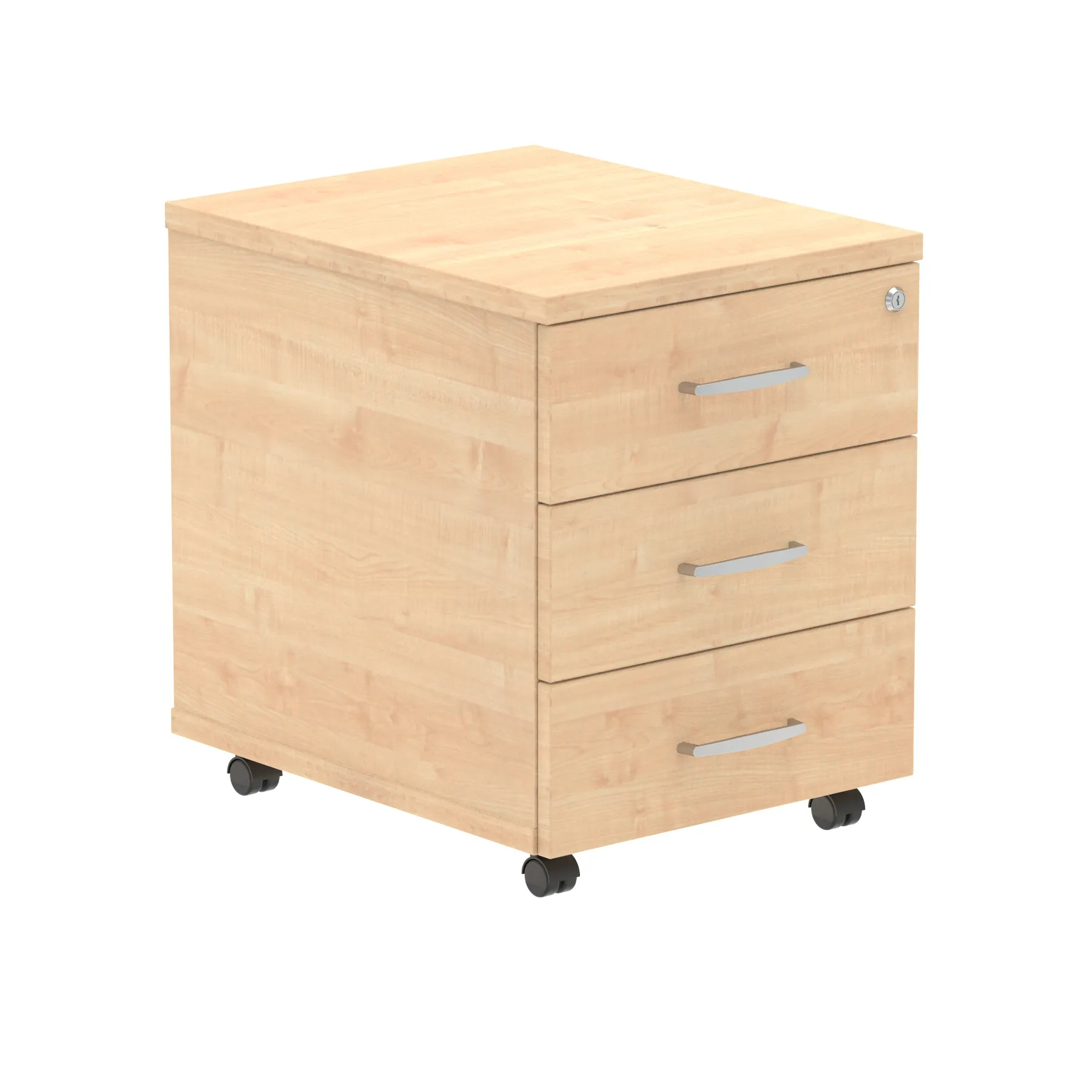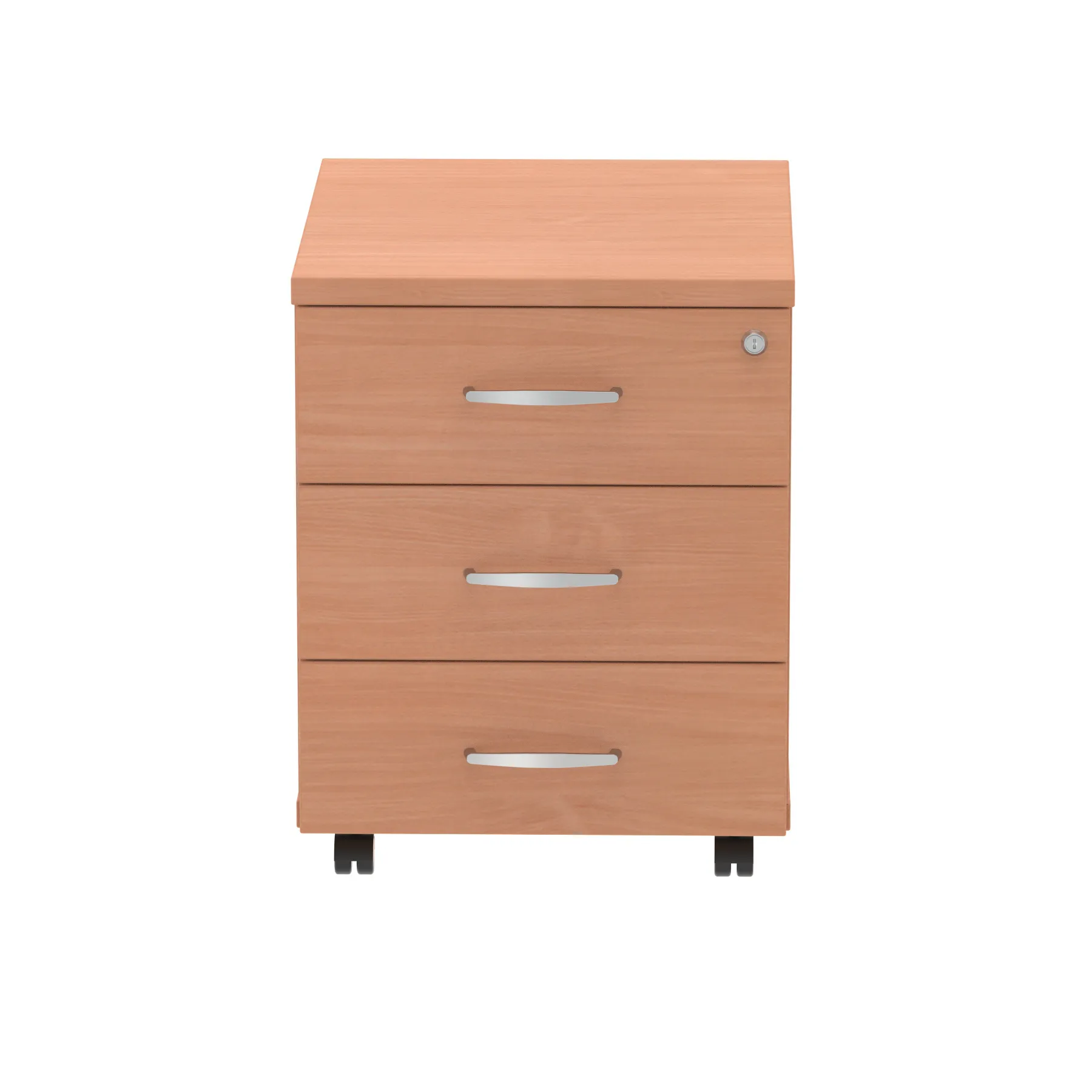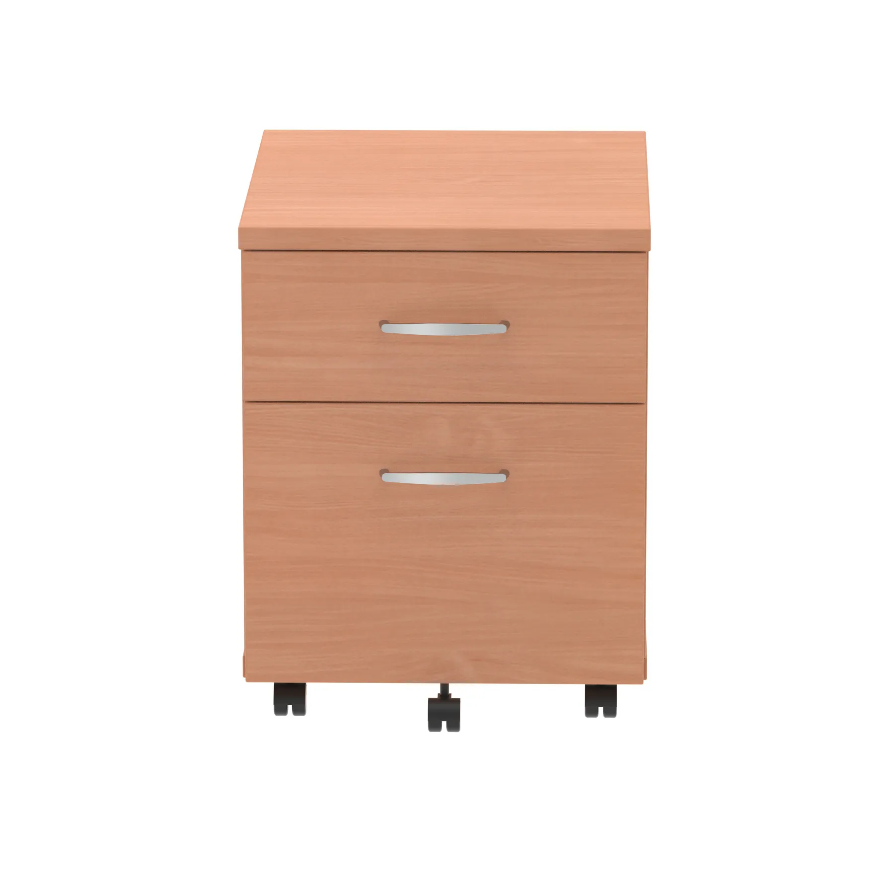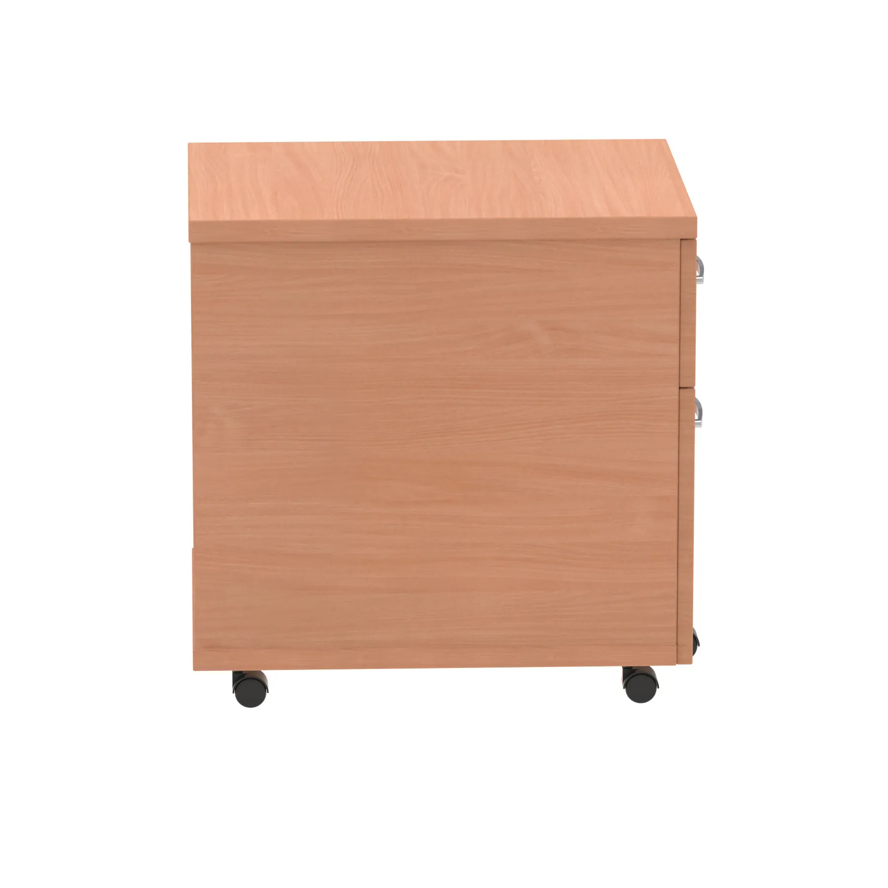 Impulse mobile pedestal | 25mm top | Full 18mm back board | 2mm abs protective edges | Steel handles | Solid box drawer construction | Fits A4 filing (Filing rails only available on the 2 drawer variant) | Smooth running castors for mobility | Steel to steel fixings | Lockable drawers | Heat resistant beech melamine finish
