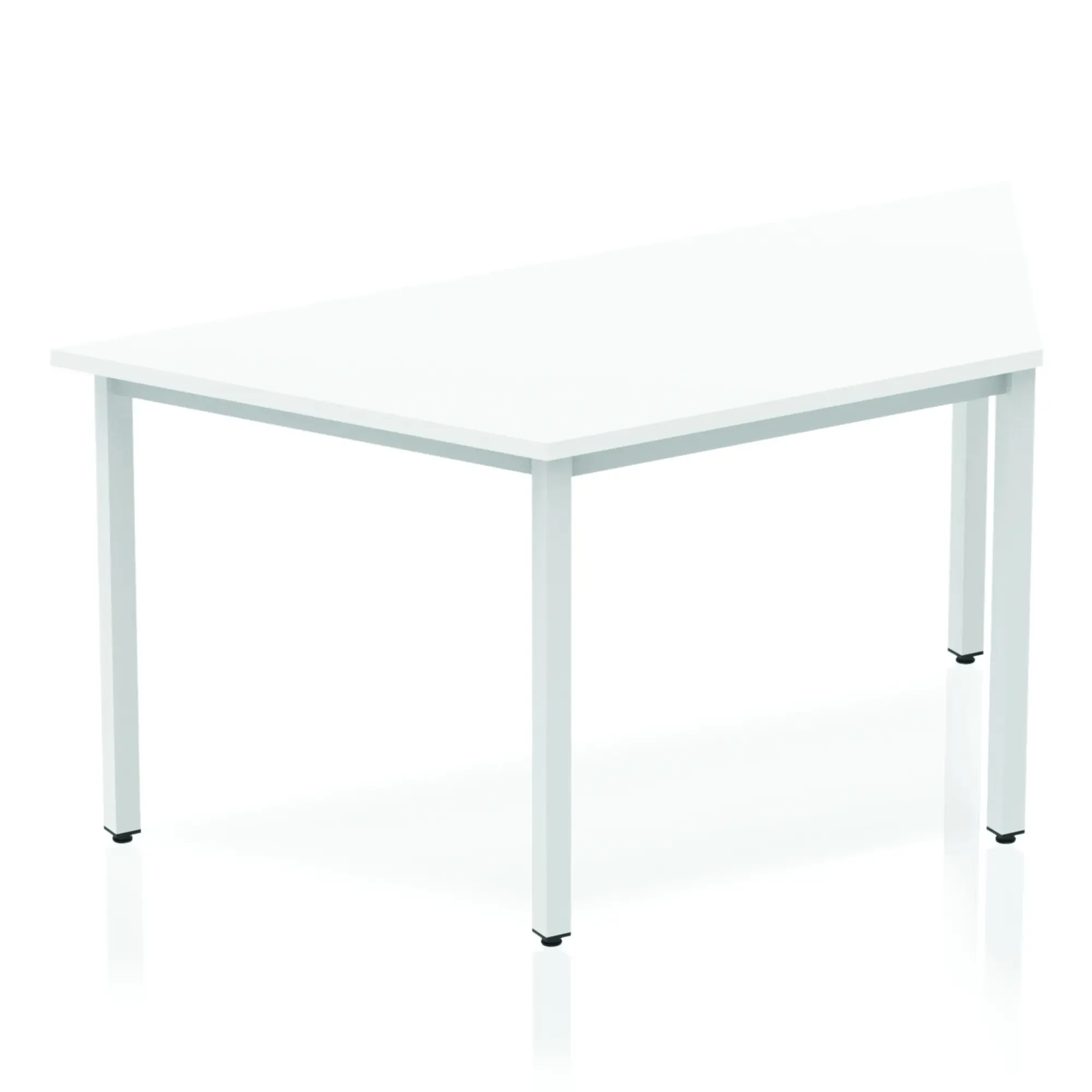 Impulse freestanding meeting table • Trapezoidal shape for groups of tables • Provides excellent team working environmentSlanted sides measure 800mm from corner to corner • 18mm thick top • Attractive silver coated box frame leg • 2mm abs protective edging • Heat resistant beech melamine finish • Weight Capacity: 100Kg