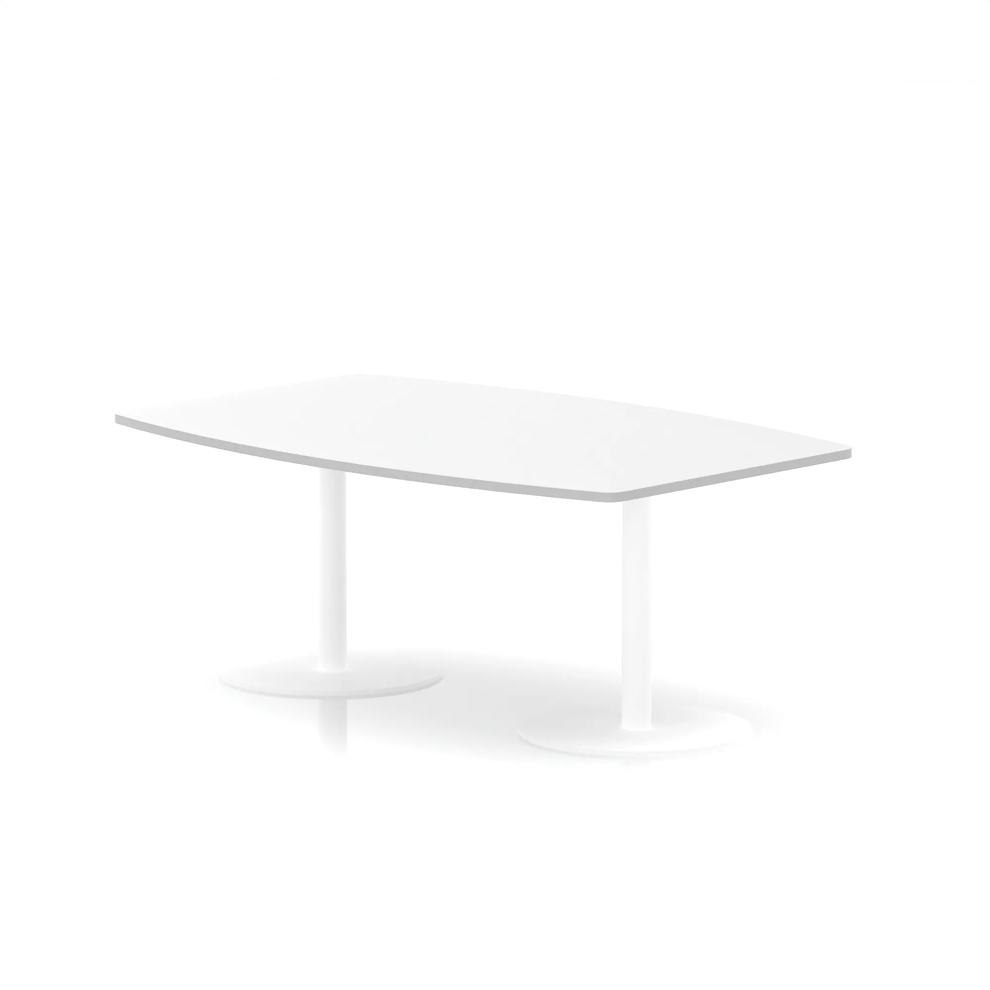 25mm thick desk top profile | Dual, brushed stainless steel effect circular base (580mm diameter) | Brushed stainless steel pillars (76mm diameter) | Weighted base provides stability | Writable desk surface