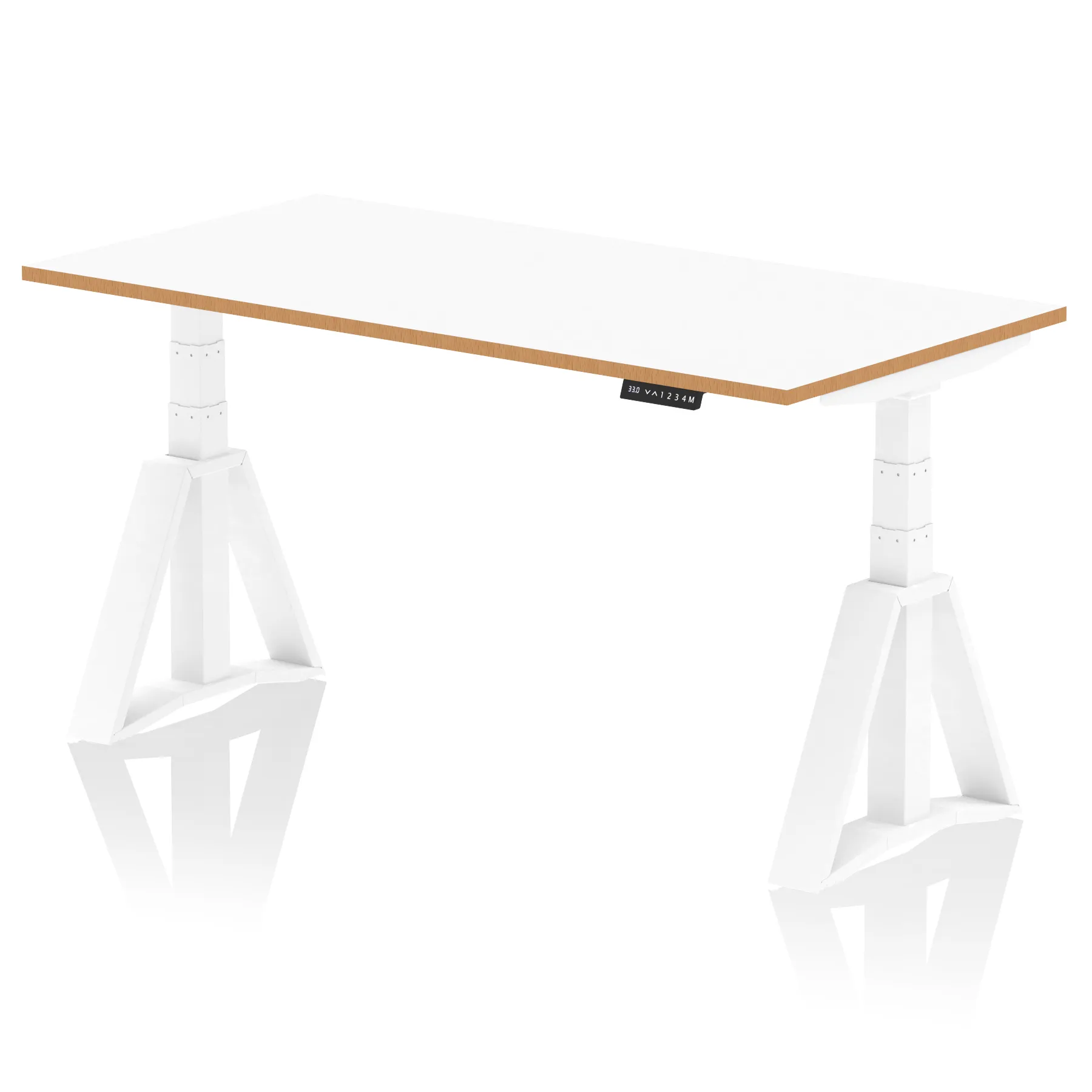 • Smooth powerful electronic dual motors • 4 programmable optional memory height settings • Large 660-1310mm height range • Premium 120kg weight capacity • Anti-trap safety stop feature • Digital LED display • Bench desk for minimalist look • Floating fixed desk top • Scalloped back edge for easy cable dumping • 2mm protective ABS edge • 25mm thick tops